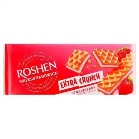 Napolitane Roshen Wafers Szendvics eperkrémmel, 142g